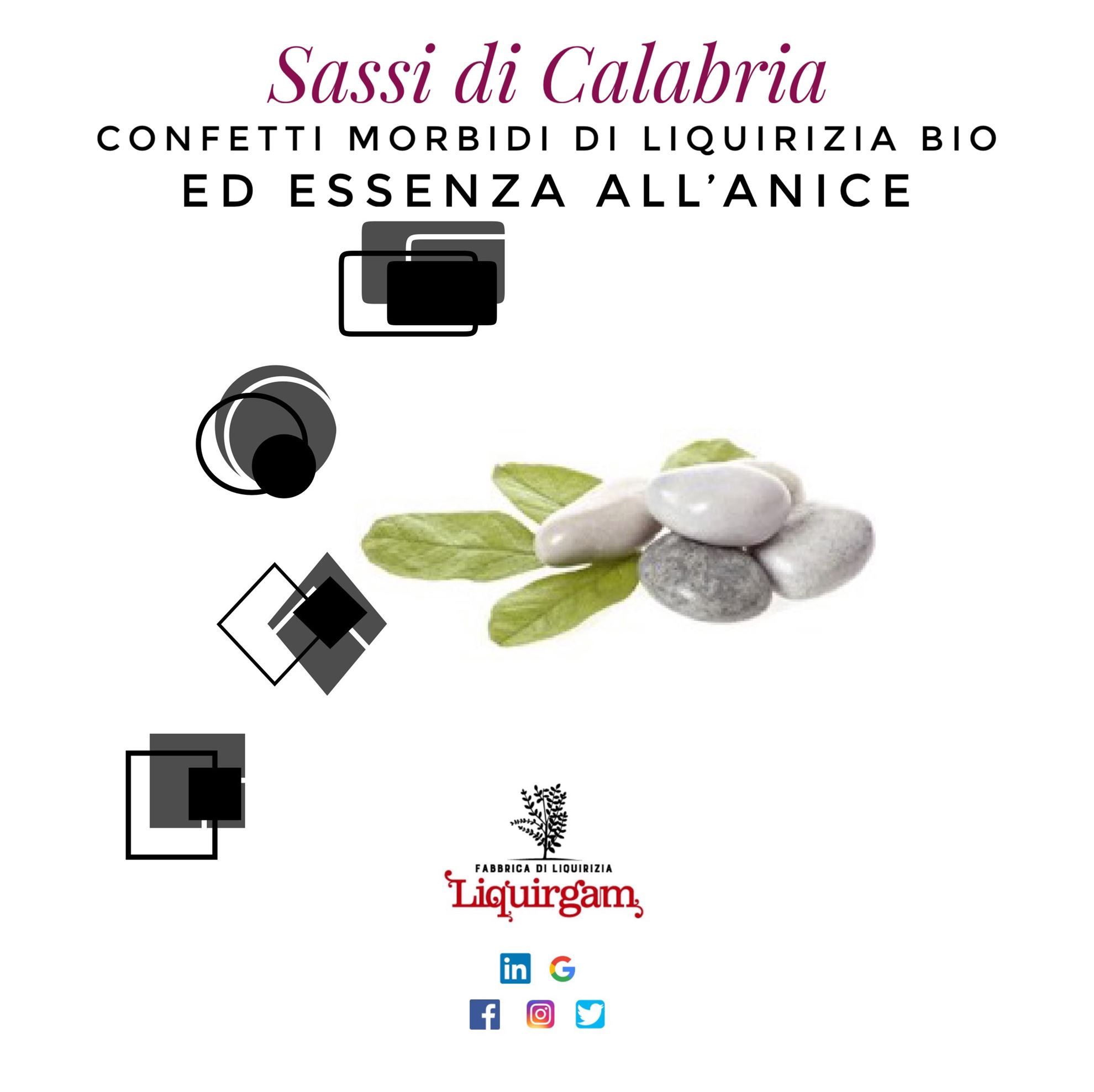 Sassi di Calabria, confetti di liquirizia biologica contornati da una confettura all'anice.